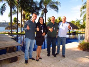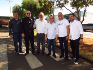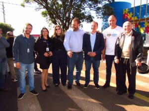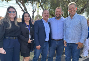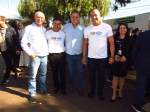Da esquerda para a direita Deputado Estadual Cobra Reporter, Dr Beto Preto, Secretário Estadual da Saúde do Paraná, Lisandro Baggio, Prefeito de Ribeirão Claro e Luiz Henrique Fonteque Frigeri, Secretário Municipal da Saúde de Ribeirão Claro.