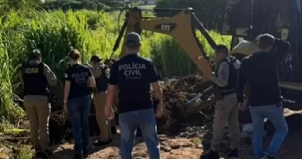 A Polícia Civil deu sequência às diligências e, com apoio da Polícia Militar e o uso de uma retroescavadeira, localizou um corpo em avançado estado de decomposição. O material foi encaminhado para perícia. Conforme informou o delegado Rafael Guimarães, os elementos reunidos até o momento indicam que o corpo seja de Thaís da Silva Santos, mas a confirmação oficial depende do laudo pericial.